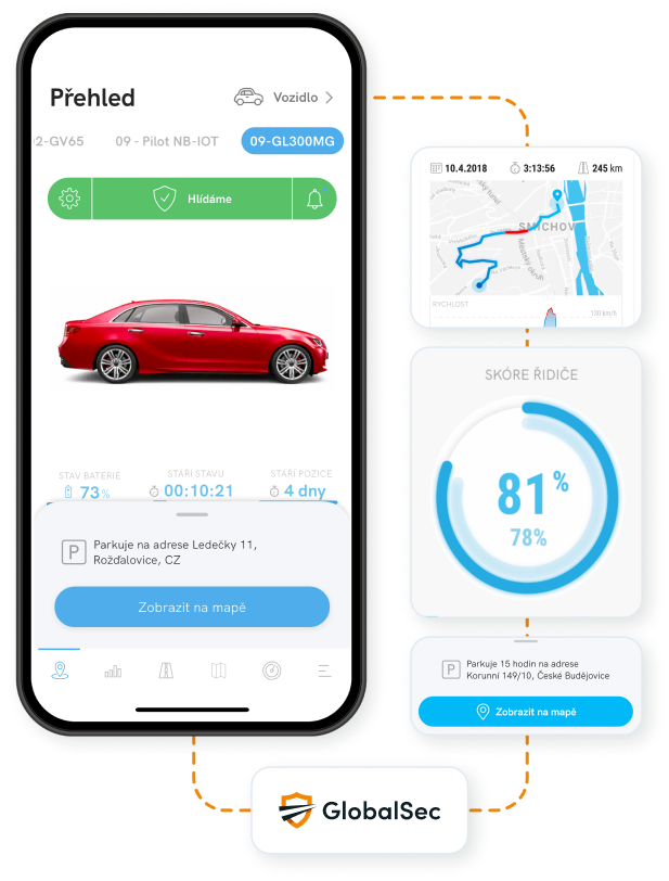 jen jízdu bez vašeho svolení. Aplikace také poskytuje knihu jízd, servisní záznamy nebo hodnocení řidiče. Tyto služby a správu vozových parků nabízíme i pro firemní zákazníky.